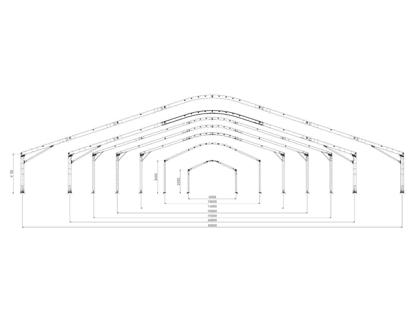 Free span of up to 40 meters with unlimited length